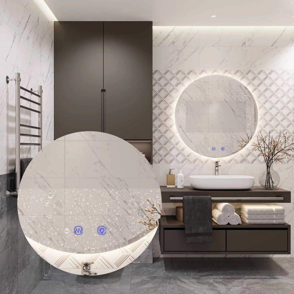 Páramentesítő funkció megkönnyíti a tükröződés megtekintését bekapcsolt állapotban – páramentes gőzszőnyeg: LED-es fali tükrönk beépített páramentesítővel rendelkezik. A párásodásgátló kapcsoló külön vezérléssel rendelkezik, amely biztonságos és energiatakarékos, és szükség szerint be- és kikapcsolható. Így nem kell attól tartanod, hogy ködösnek tűnsz a tükörben bőrápolás vagy sminkelés közben.